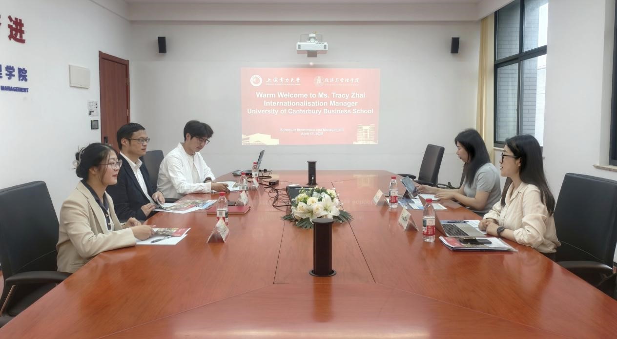 4月17日,新西兰坎特伯雷大学商学院国际事务经理Tracy Zhai一行到访我院,学院党委副书记、常务副院长潘华携辅导员蒋寅、外事秘书吕嘉丽出席座谈会,双方就深化学科专业人才培养合作展开务实交流。