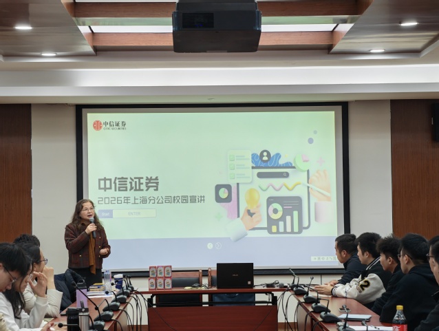 2025年11月13日,中信证券股份有限公司上海分公司副总经理陈哲一行到访tyc234cc 太阳成集团tyc234cc 太阳成集团,双方围绕人才培养、实习基地建设、校园招聘等议题进行了深入交流,并面向全校学生举办了专场校园宣讲会。此次活动是tyc234cc 太阳成集团持续推进“访企拓岗促就业”专项行动的重要举措,为深化校企合作、促进学生高质量就业搭建了有效平台。
