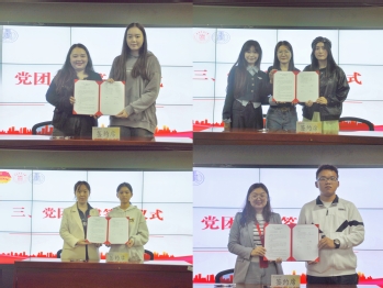 随后,学院学生党支部书记与团支部书记代表共同签署了党团共建协议,并举行“头雁”领航员和“鸿雁”宣讲团成员聘任仪式。聘任仪式不仅激发了党团骨干的荣誉感和使命感,更鼓励他们在日后充分发挥党团共建优势,积极组织开展丰富多彩的党团共建活动。