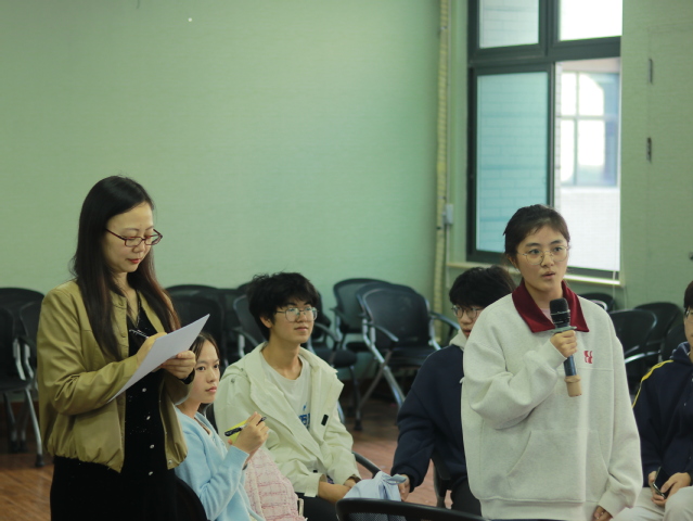 在围桌座谈环节,与会学生被分成五个小组,在组内进行自我介绍并分享自己选择专业的初衷及未来10年的人生规划。通过深入的交流,在场学生不仅加深了对彼此的了解,更激发了对未来职业发展的思考与探索。