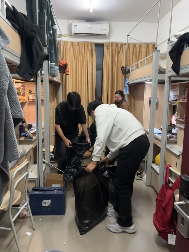 同时,学院开展寝室卫生检查专项行动。重点排查阳台堆积的纸箱等易燃物,向同学们强调保持寝室整洁、消防通道畅通的重要性,进一步消除寝室安全隐患,为学生营造安全舒适的居住环境。